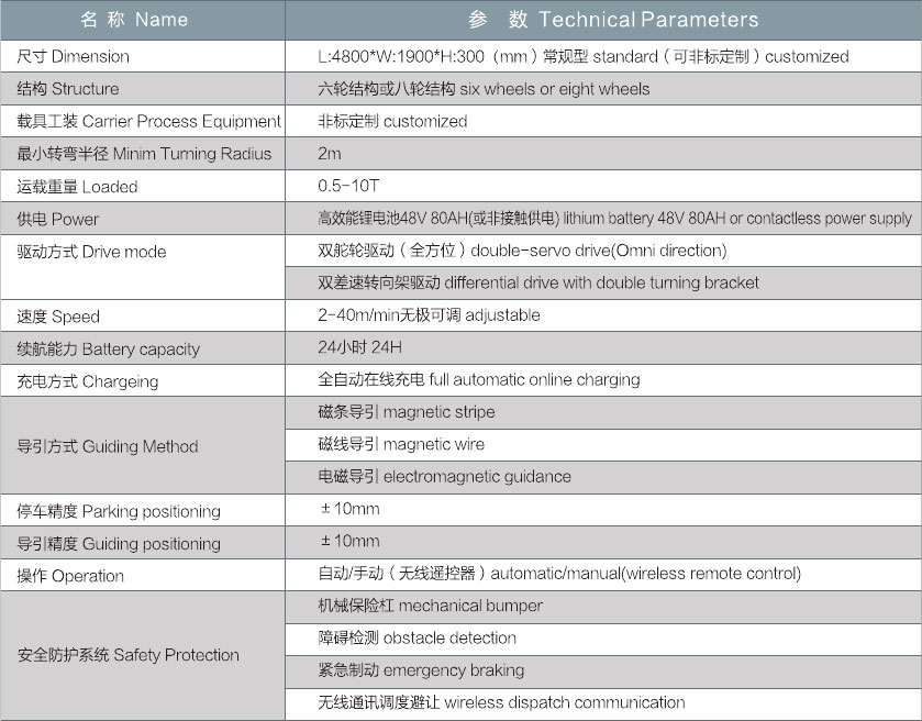 The above models can be used for carrying frames and welding mobile frames. The Plate load-bearing AGV car adopts the load-bearing car body structure, can be placed all kinds of tooling, used to support the workpiece, can replace catenary, car and other equipment; By combining with non-standard customized vehicles, different types of workpieces can be loaded and transported.